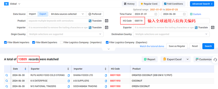 在evo真人视讯海关数据查询平台中,输入准确的HS Code。如果你不确定要开发的国家,可以使用前6位海关编码进行搜索。前6位编码在全球范围内统一,可以帮助你找到更多的潜在客户。