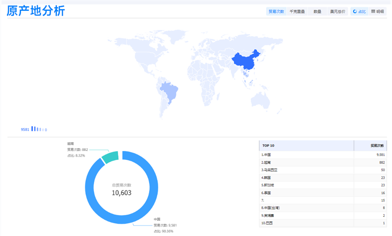 例如,利用【evo真人视讯外贸通SaaS平台】查看家具产品的进出口贸易记录,evo真人视讯可以比较不同国家/地区的贸易量和贸易额,分析市场的进口和出口情况。