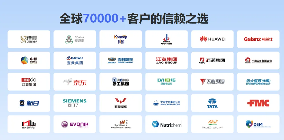 客户 现在已经服务包括中粮、石药集团、招商银行、华为、安道麦、江汽集团、红豆集团在内的 70000+ 政府组织和进出口企业。